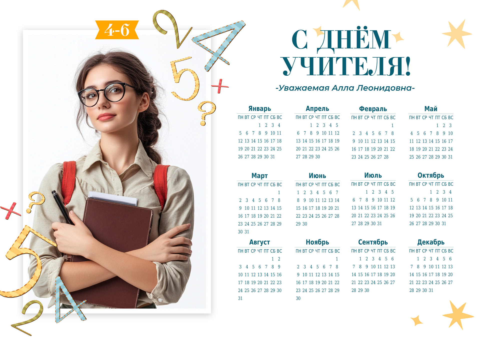 День учителя, календари, рамка для фото.
