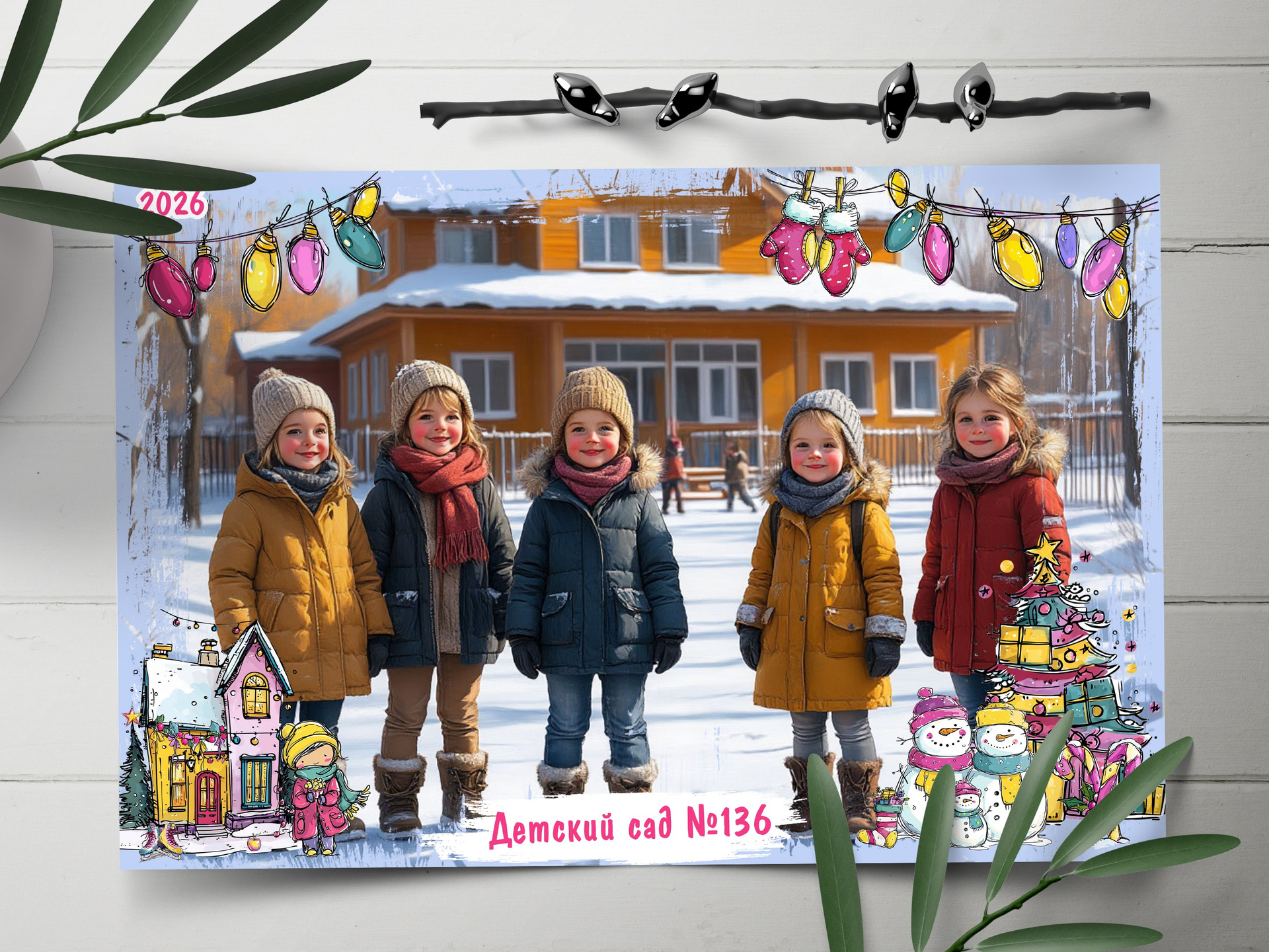 Шаблон — в слоях, расположение фото и количество детей в виньетке можно менять.